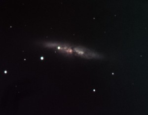 M82 Galaxy in Ursa Major. 4×5 minutes each of RGB, Atik 314+, 10″ LX200 at f6.3
