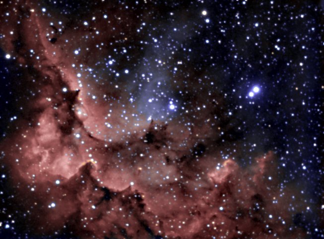 Wizard Nebula NGC7380 with the Skywatcher 80ED at f6.25. Total exposure 2.5 hours of 5 minute subs in hydrogen alpha.