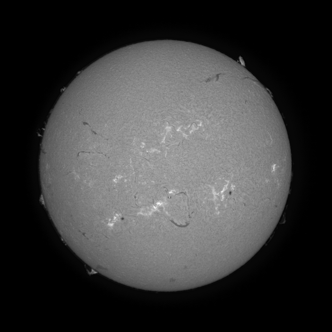 All taken with the ZWO ASI 290MM, Coranado PST and x2 Barlow lens. One exposure for the prominence and a different shorter exposure for the disk. Processed as layers in Paint Shop Pro and then combined using the difference option which means the disk ends up as a negative image .