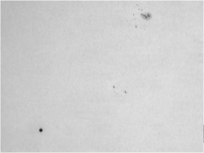 The morning started clear but there was a fair amount of cloud around midday. Fortunately it all cleared again by about 2pm and there was plenty of chance to image with the Coranado PST and in white light with a Meade 125mm Maksutov. Images showing prominences are a combination of 2 exposures. A long one for the prominence and a short one for the disk.