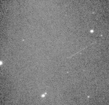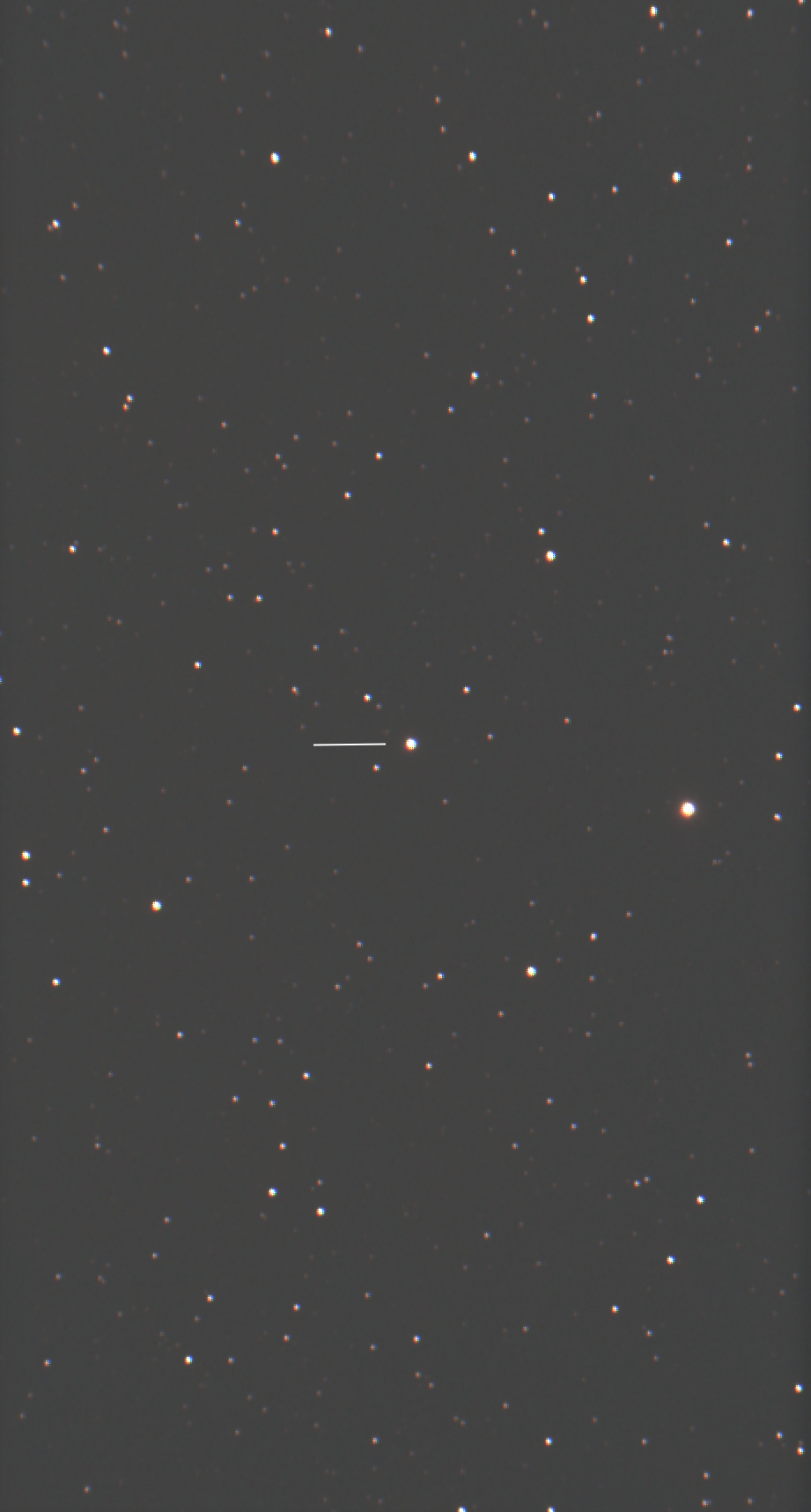 A picture of JWST which is 1 million miles away at the L2 Lagrange point. Estimated magnitude about 18. 2 minute exposures with the AIS 183 and the 250mm SCT. The line represents the drift of JWST relative to the stars over about 25 minutes.